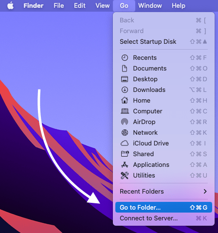 For at installere din HTML-e-mail-signatur skal du vælge “Gå > Gå til mappe” i Finder-menuen.